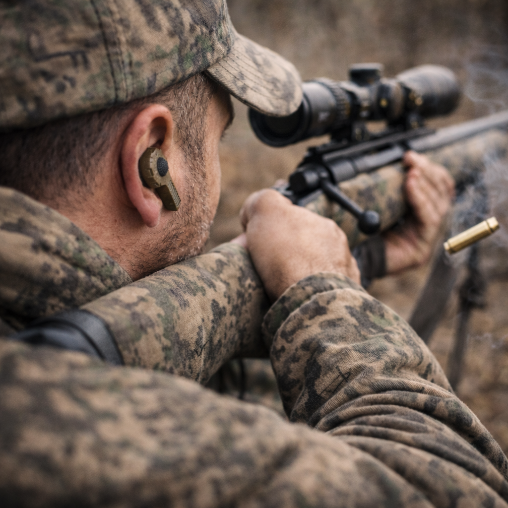 Traditional hearing protection always gets in the way - bulky earmuffs brush against the buttstock, break your cheek weld, and becomes uncomfortable fast.
